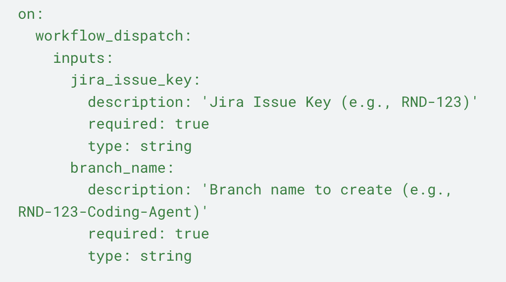 We started simple. Really simple. The first version was a single GitHub Actions workflow with a workflow_dispatch trigger - meaning you had to go to the GitHub Actions UI, click “Run workflow,” and manually type in a Jira issue key and branch name.