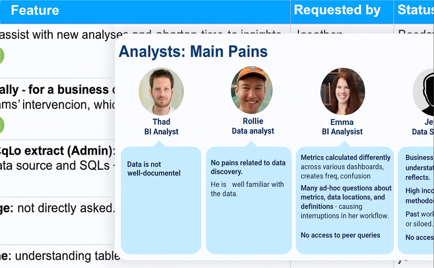 Summarize your findings on a monthly basis and share them with your customers. Data leaders appreciated learning how their teams are using the product, what challenges they face, and what they are currently focusing on - it gives them valuable visibility into their own organization.
