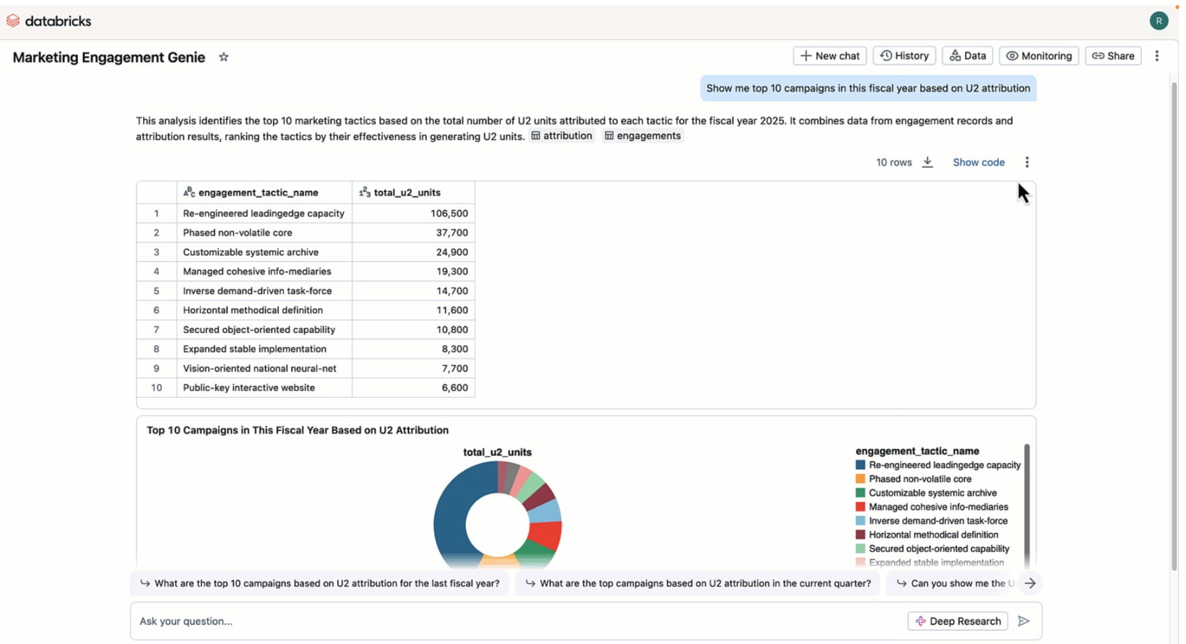 On the other side, we have the "Conversational Insight" paradigm. This is the charismatic storyteller who can effortlessly weave narratives from complex data. The semantic layer is a critical part of this AI engine - the output of your AI agent is only as good as the documentation you feed it. Platforms like Snowflake's Cortex Analyst and Databricks Genie are the stars of this show. They leverage the power of Large Language Models (LLMs) to provide a natural language interface for business users. The goal here is speed-to-insight. A marketing manager can simply ask, "Which campaigns had the best ROI last quarter?" and get an immediate, data-backed answer without writing a single line of SQL.